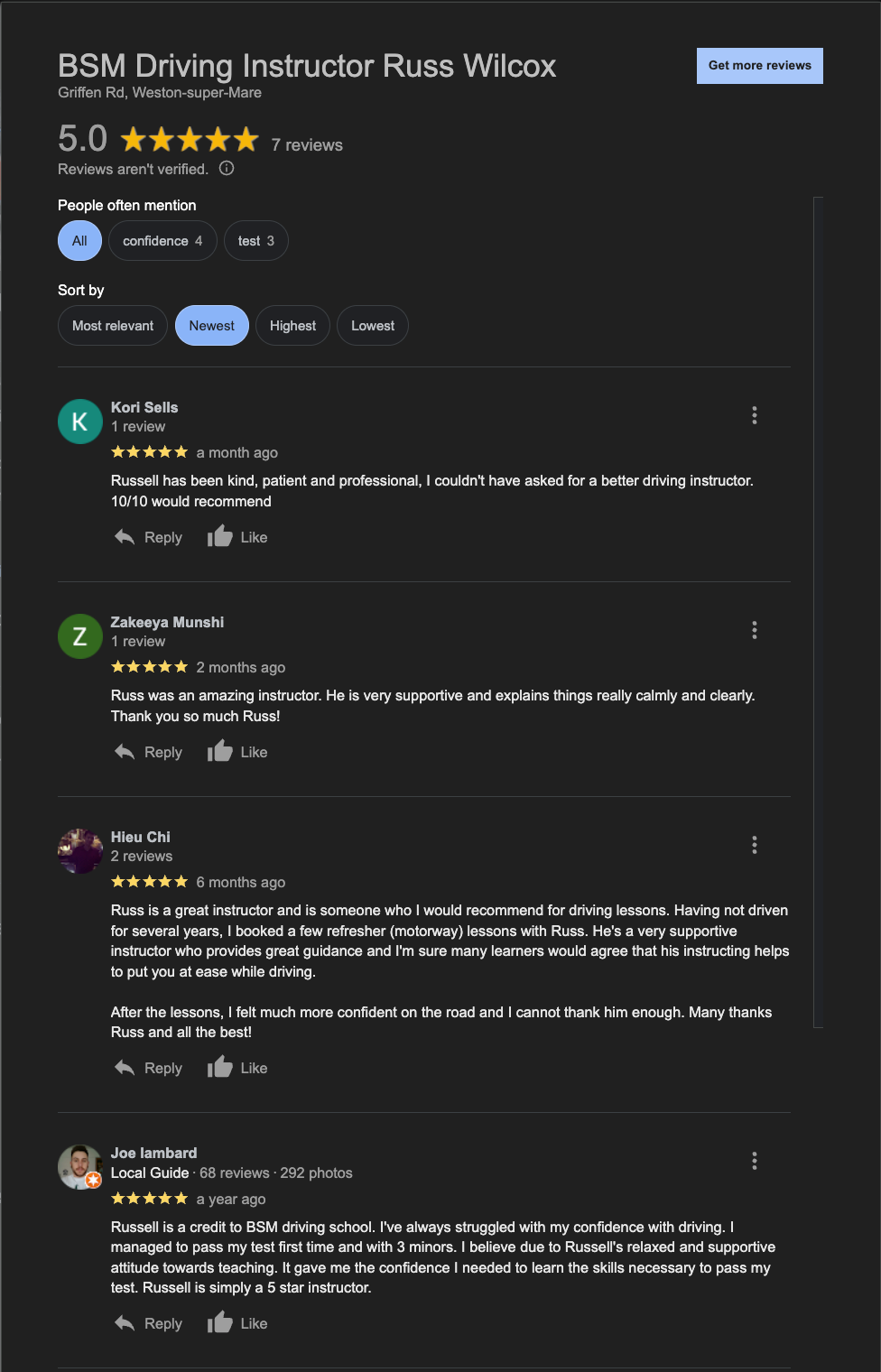 of my Google reviews.
